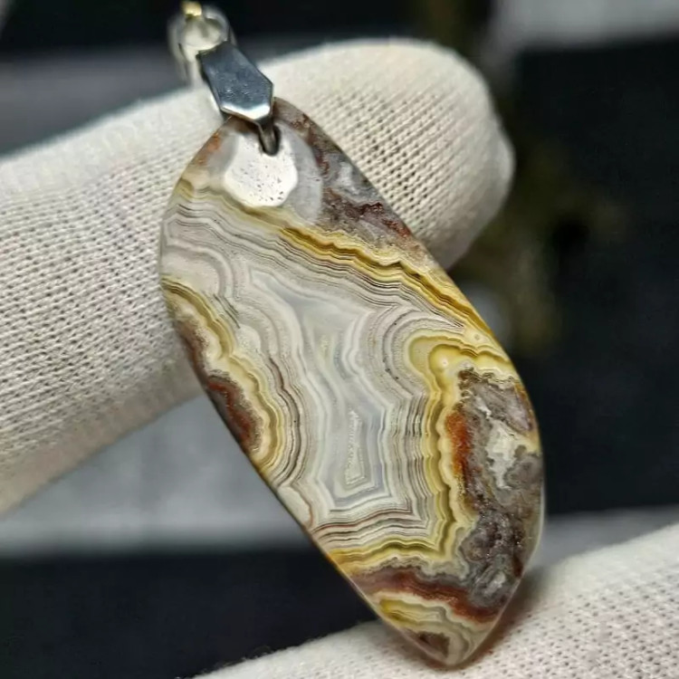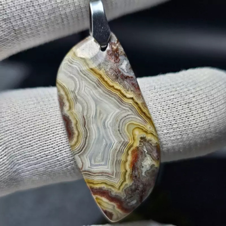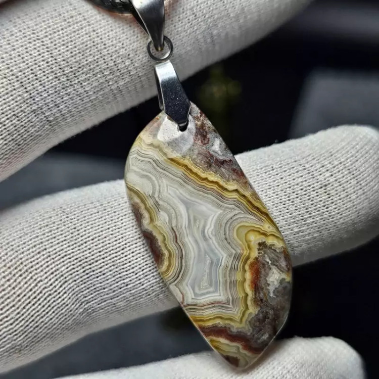 گردن آویز سنگ طبیعی کریزی لیس آگات معدنی