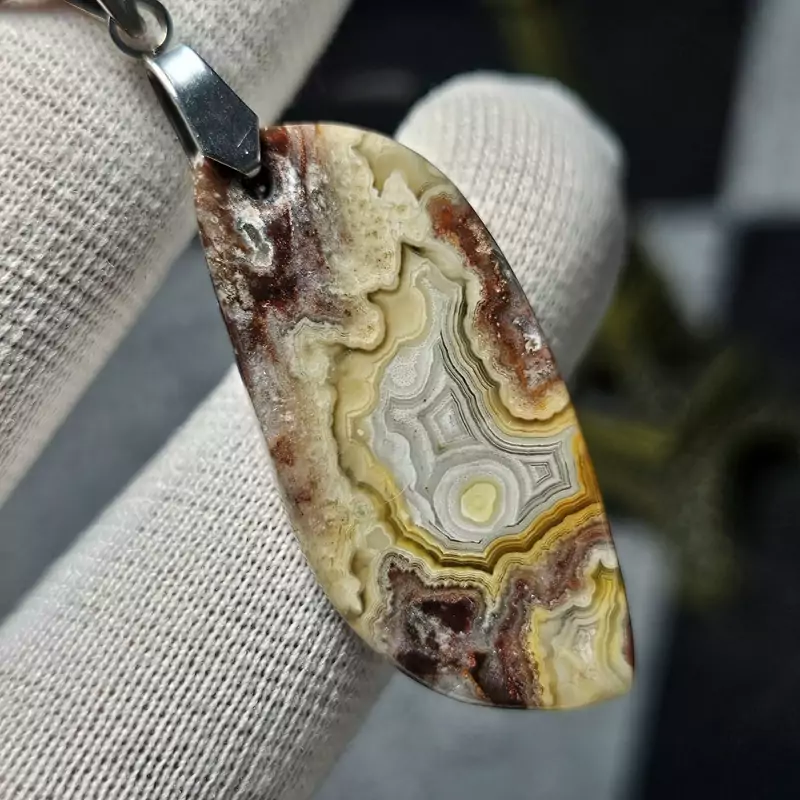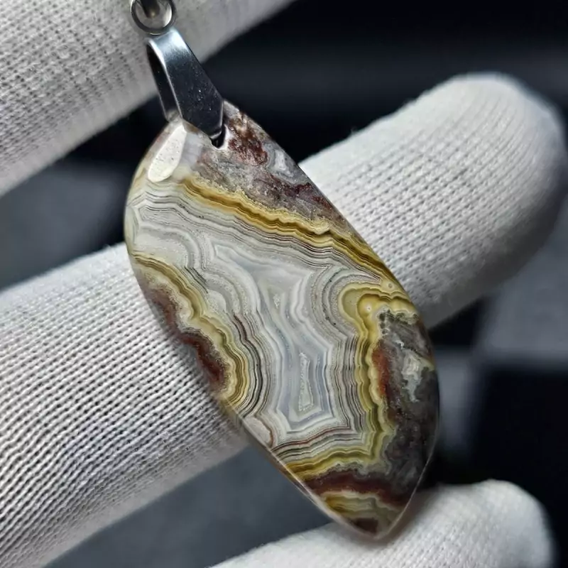 گردن آویز سنگ طبیعی کریزی لیس آگات معدنی