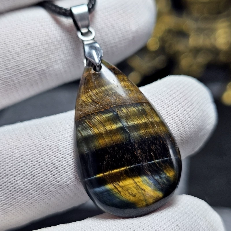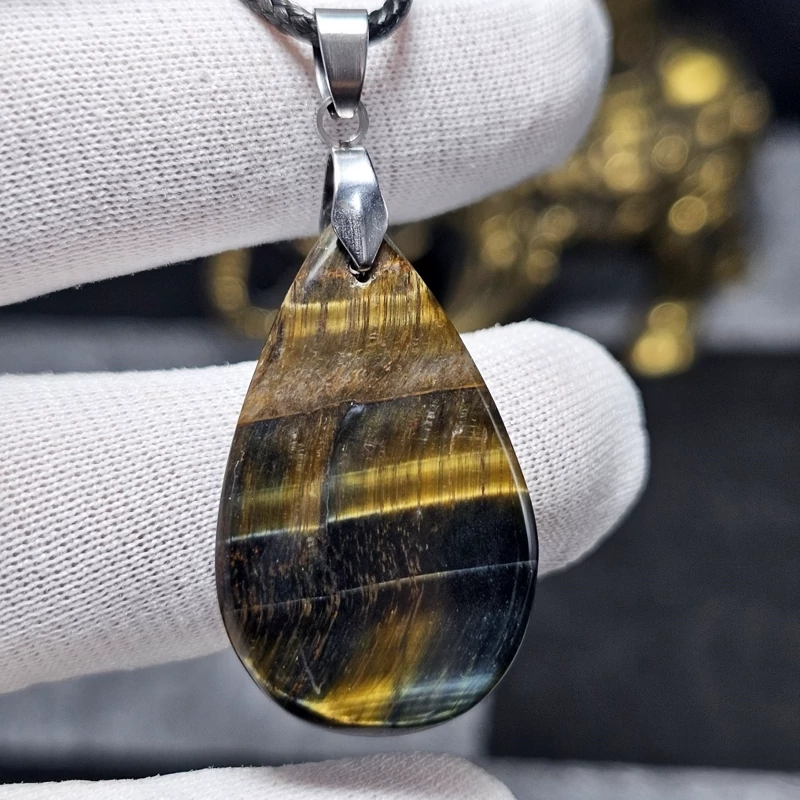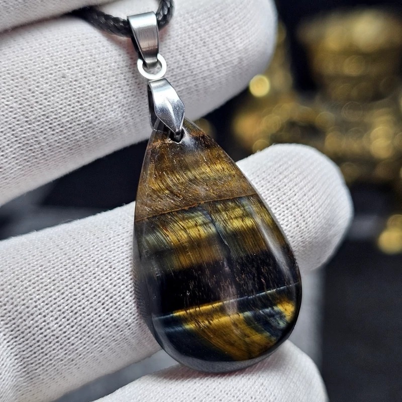 آویز گردنبند سنگ طبیعی چشم ببر معدنی