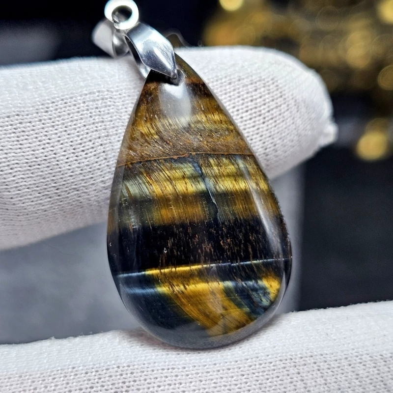 آویز گردنبند سنگ طبیعی چشم ببر معدنی کد 35952