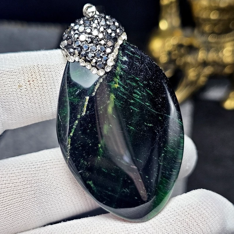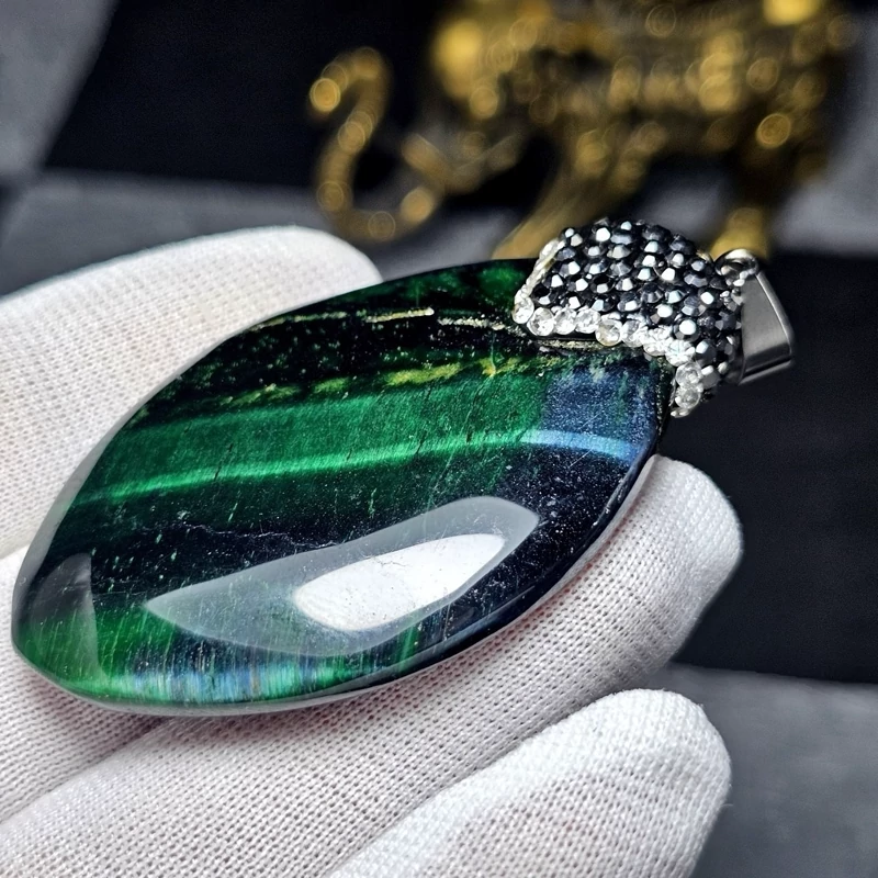 آویز گردنبند سنگ چشم ببر سبز معدنی