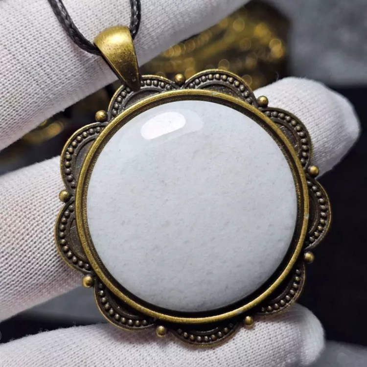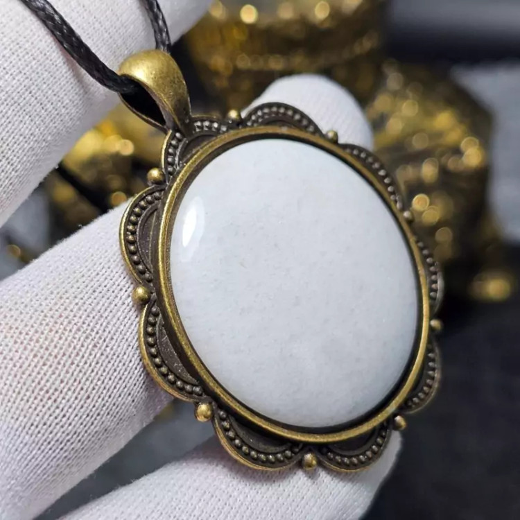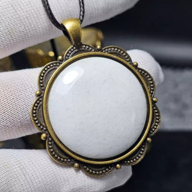 گردن آویز سنگ جید یخی معدنی قاب برنجی