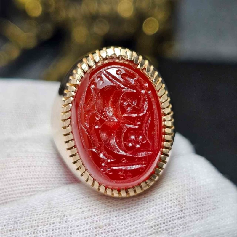 انگشتر طلا روس با سنگ عقیق سرخ معدنی خط دست
