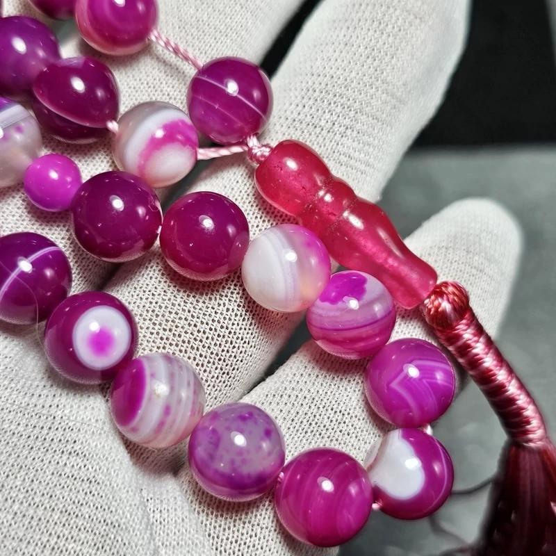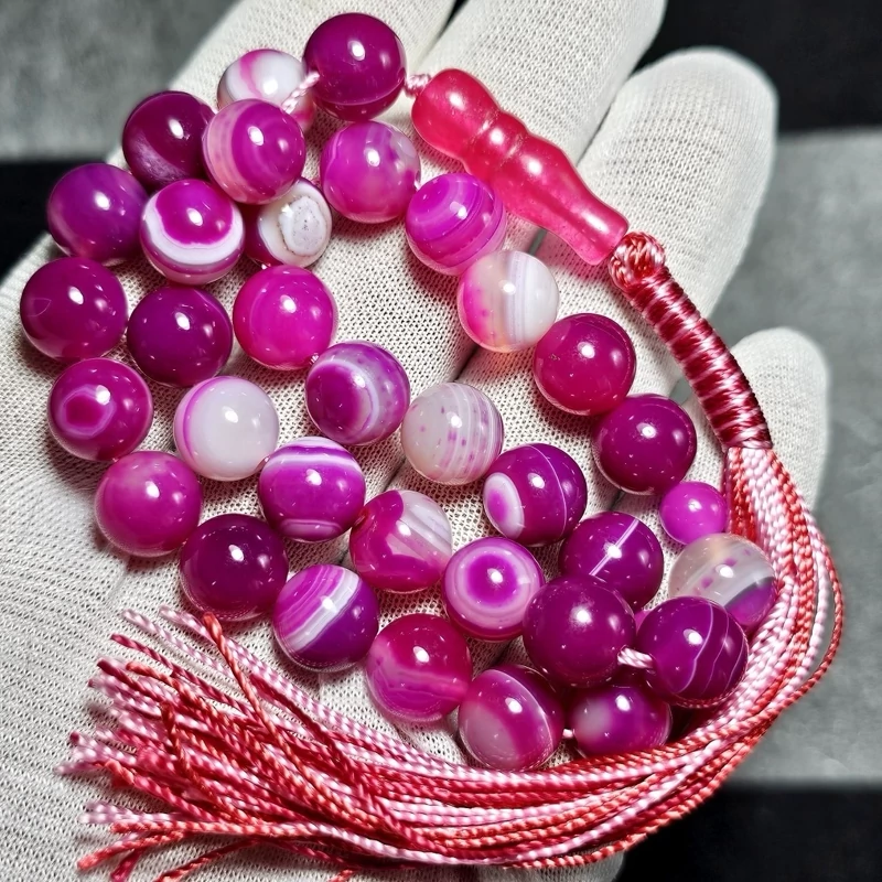 تسبیح 33 دانه عقیق صورتی باباقوری معدنی