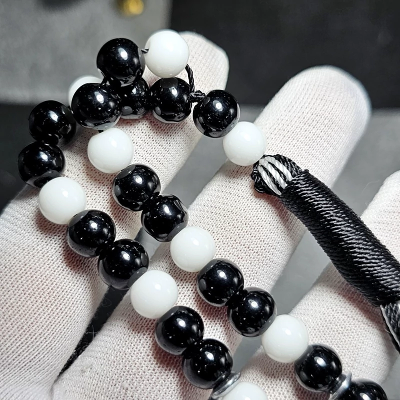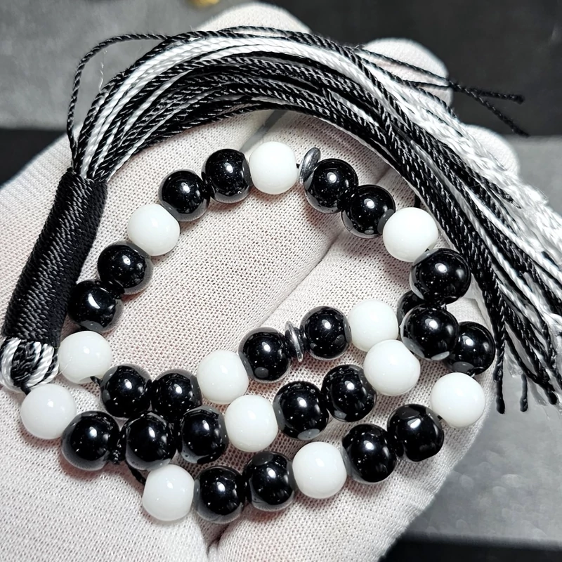 تسبیح 33 دانه اونیکس سفید و سیاه