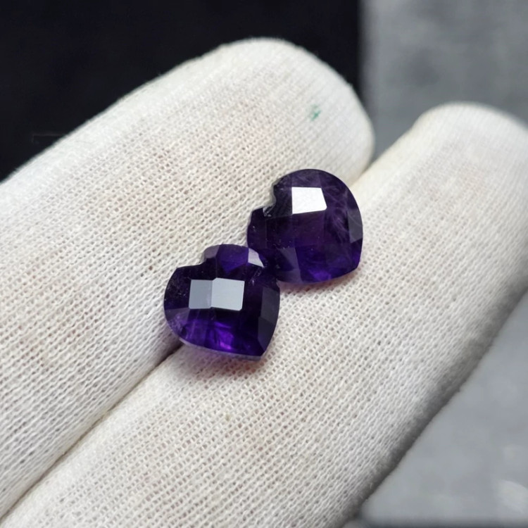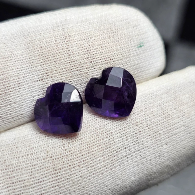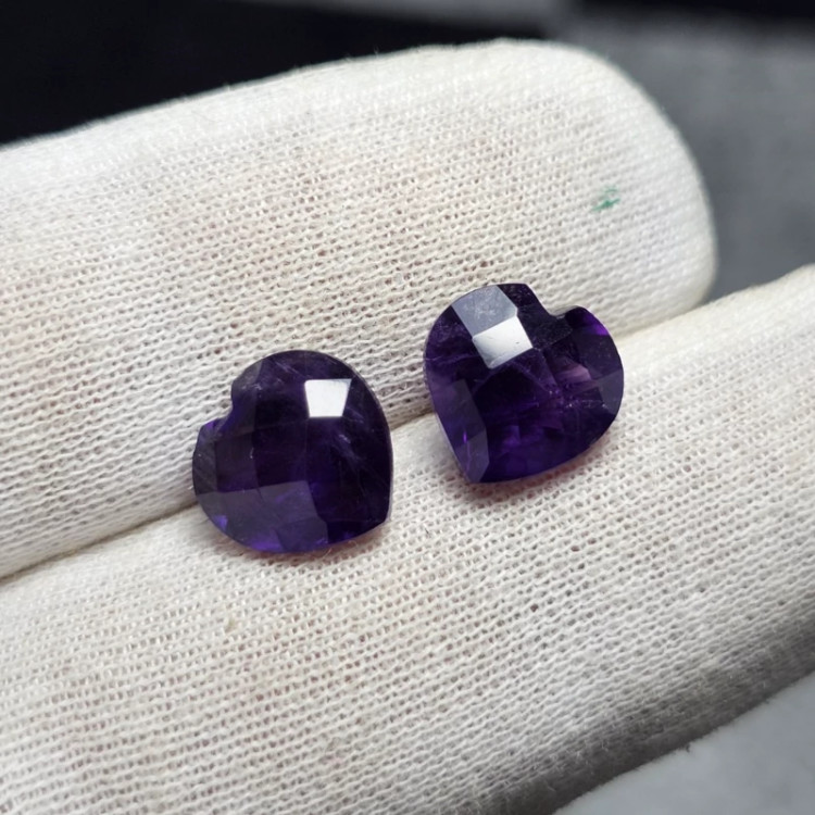 جفت نگین سنگ آمیتیست معدنی تراش قلبی 6.45 قیراط کد 32004