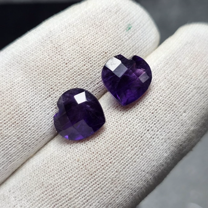 جفت نگین سنگ آمیتیست معدنی تراش قلبی 6.45 قیراط کد 32004