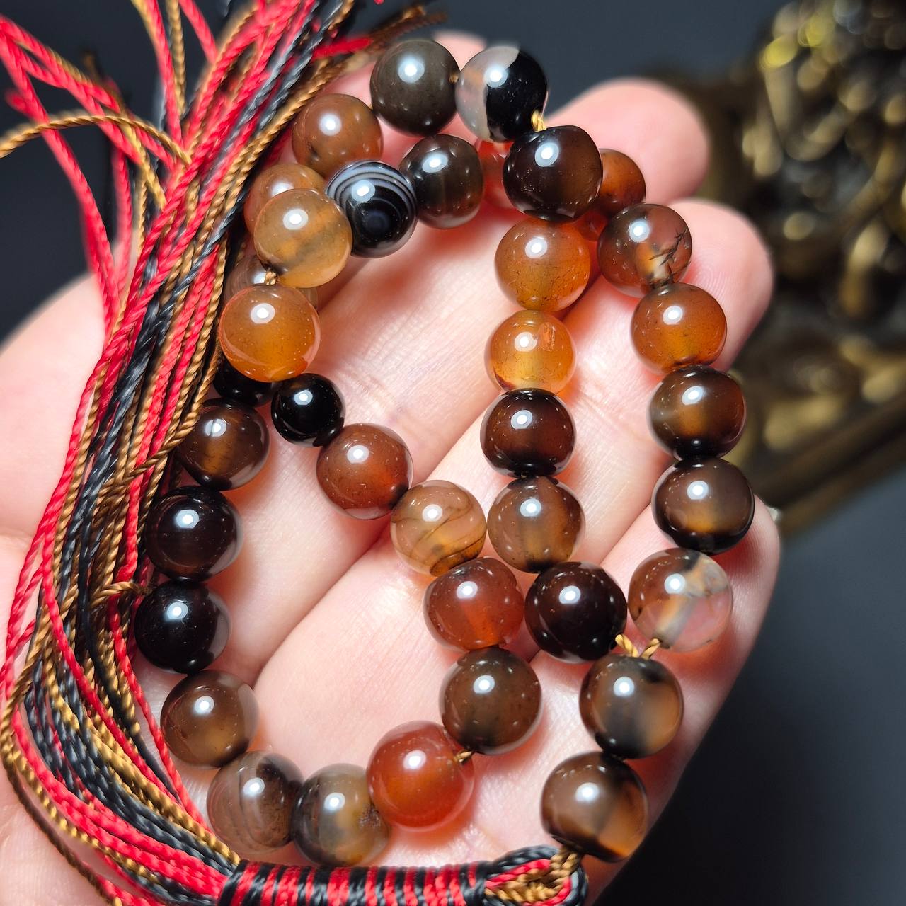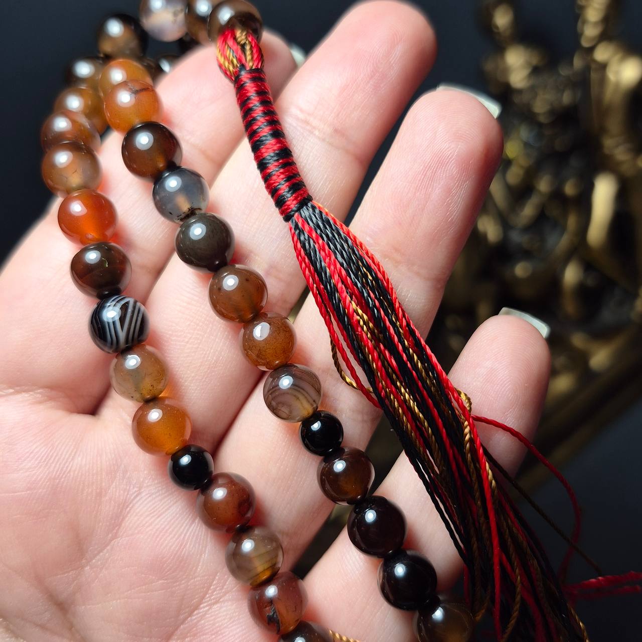 تسبیح ۳۳ دانه سنگ عقیق معدنی سایز ۸ میل کد k1091
