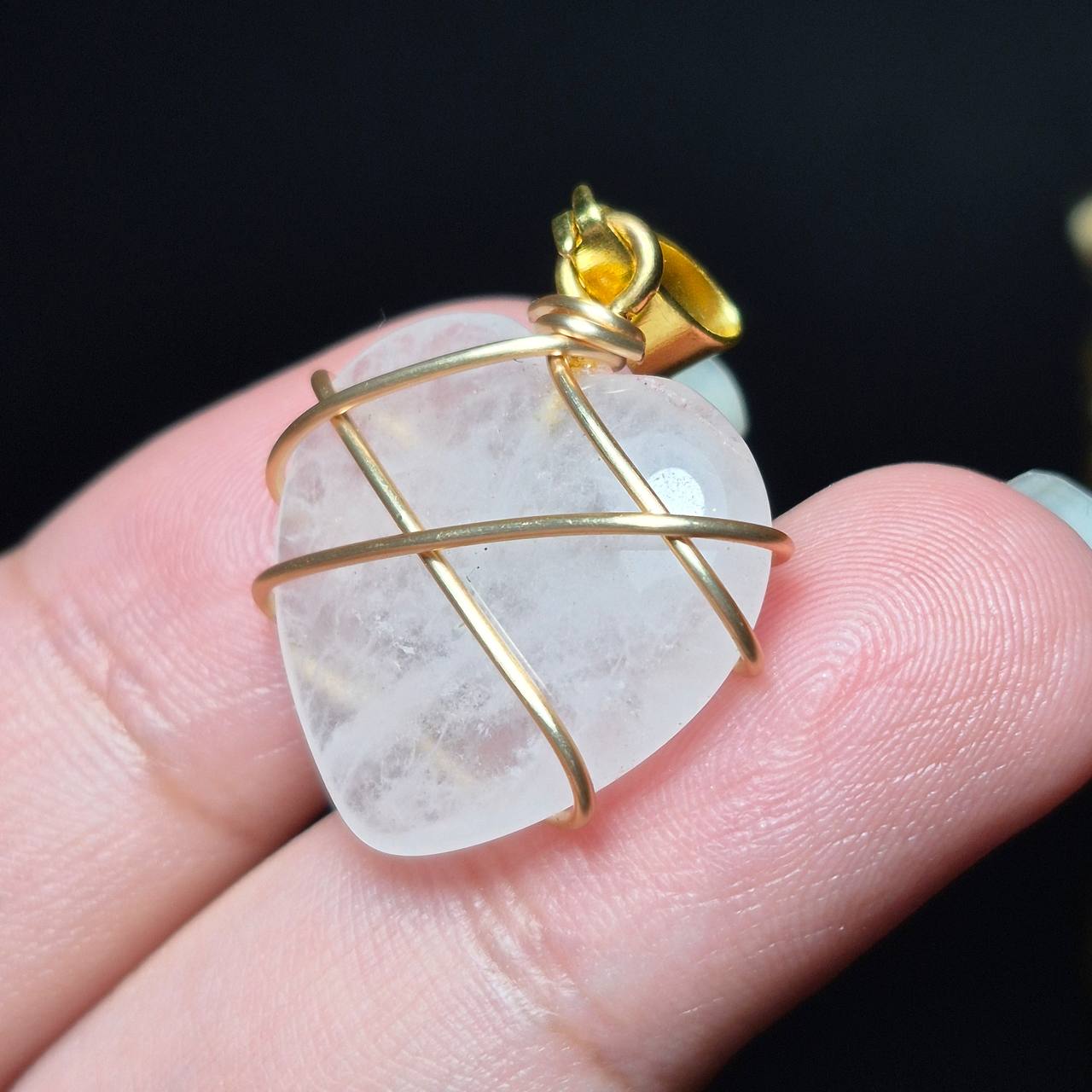 گردن آویز سنگ رز کوارتر معدنی کد k1099