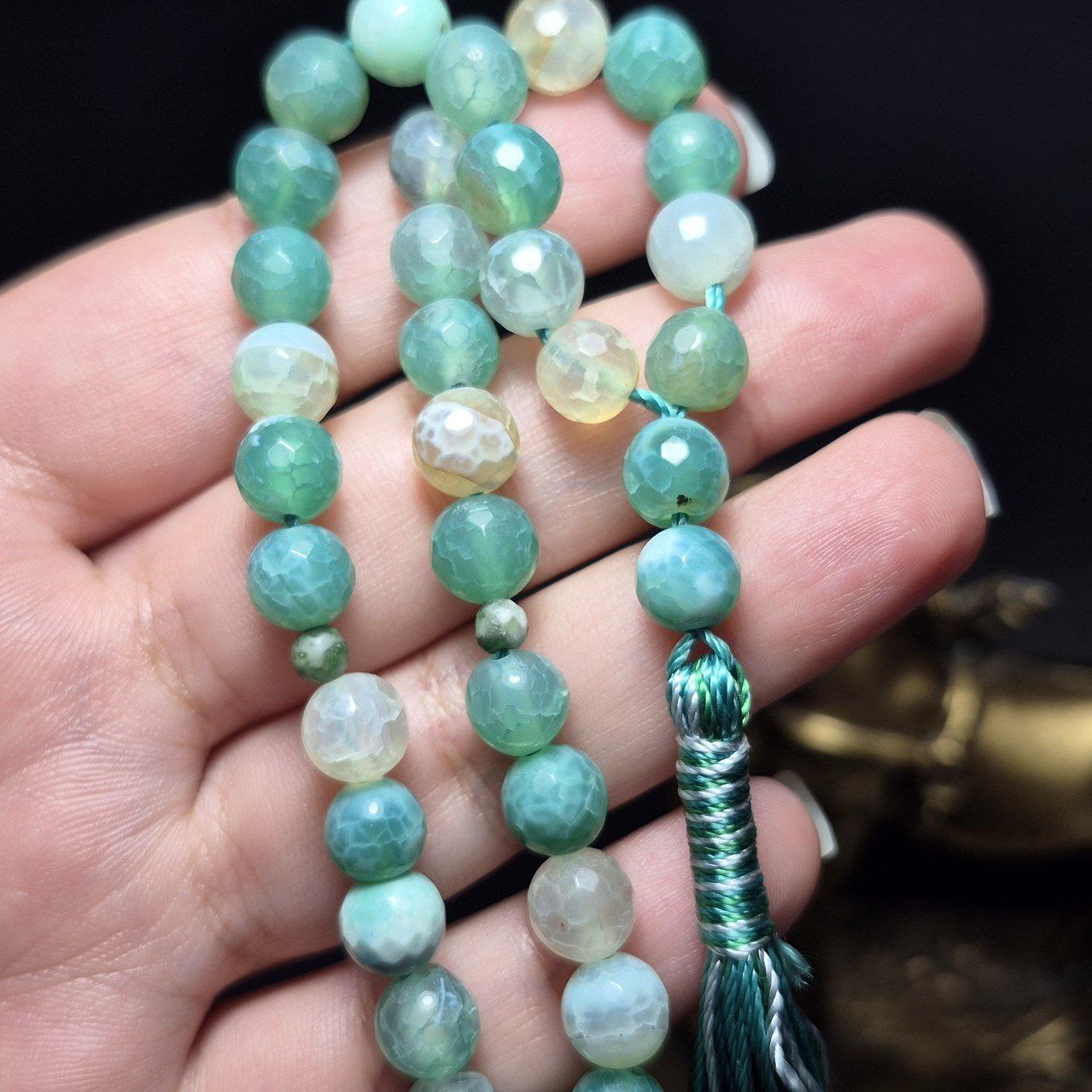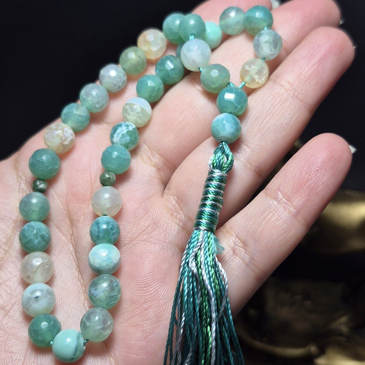 تسبیح ۳۳ دانه عقیق اقیانوسی معدنی سایز ۸ میل کد Z7148