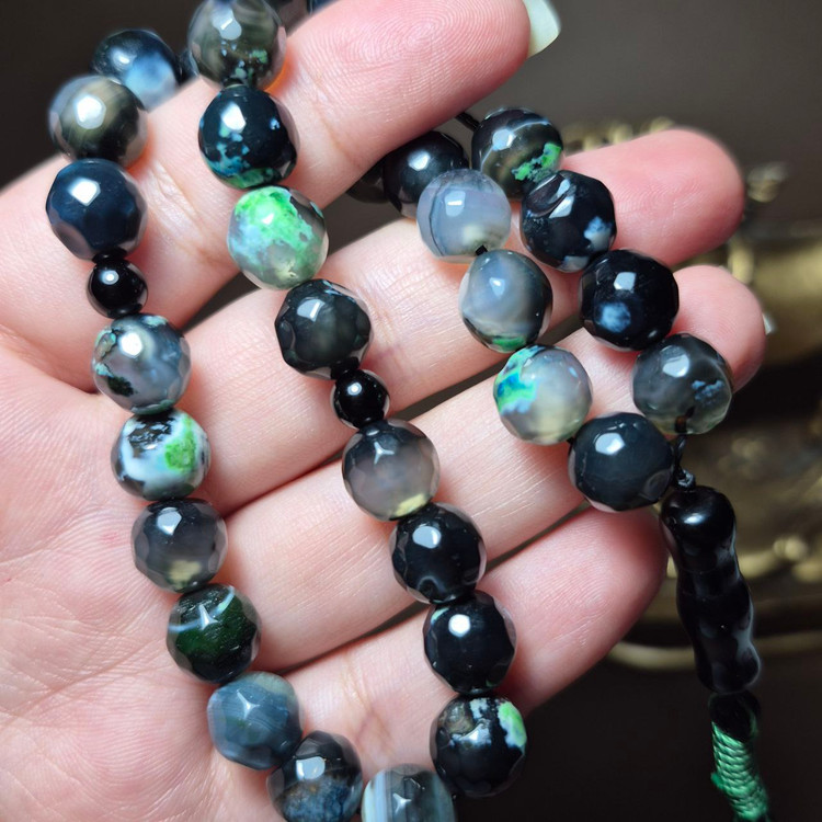 تسبیح ۳۳ دانه سنگ عقیق معدنی سایز ۱۰ میل کد k1142