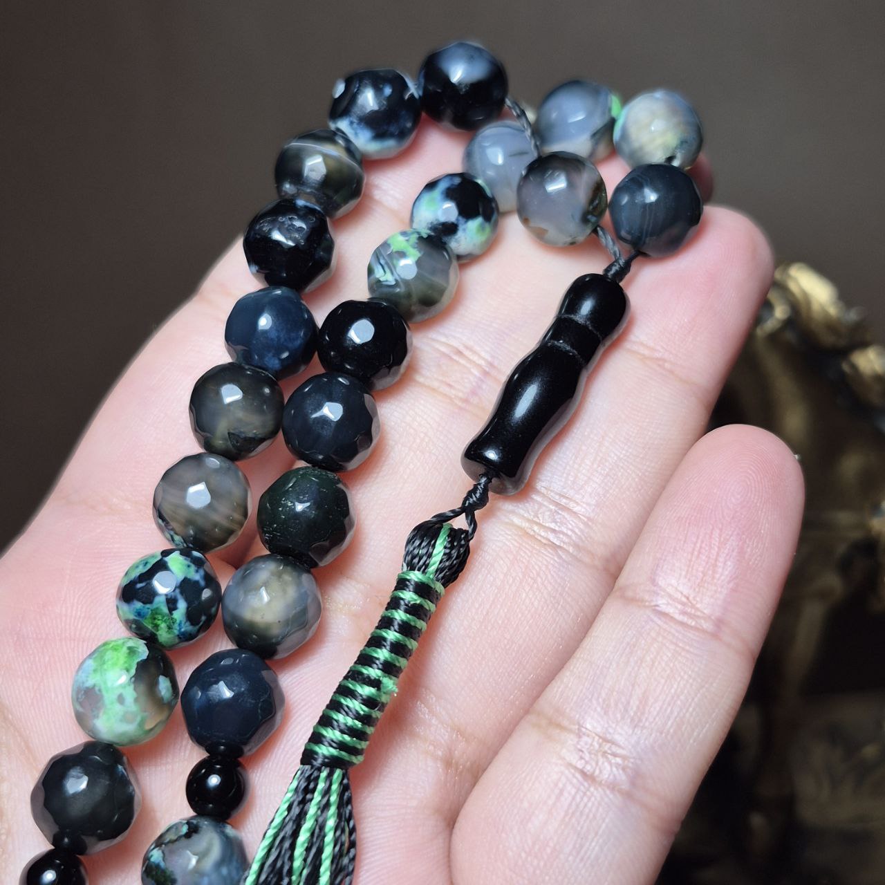 تسبیح ۳۳ دانه سنگ عقیق معدنی سایز ۱۰ میل کد k1142