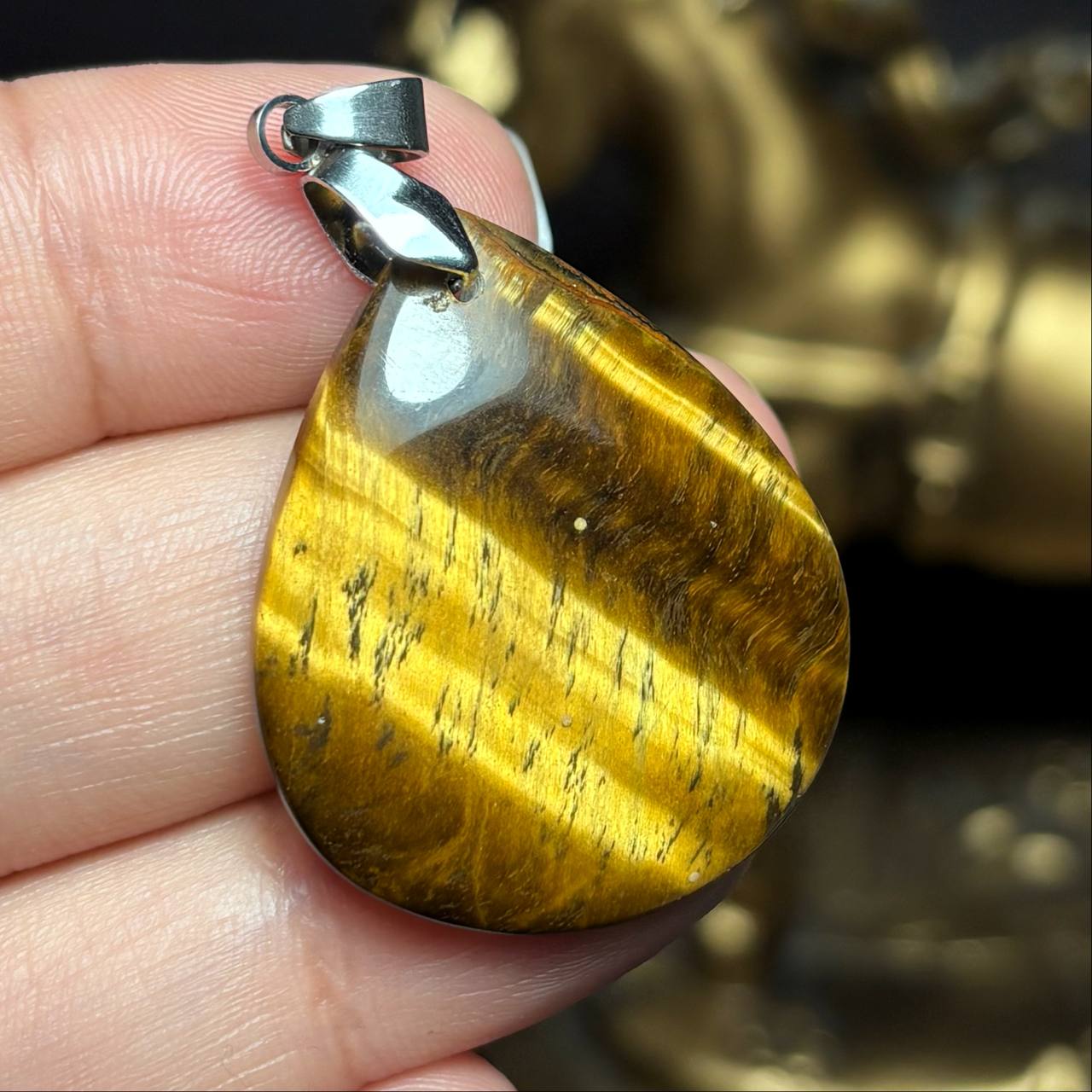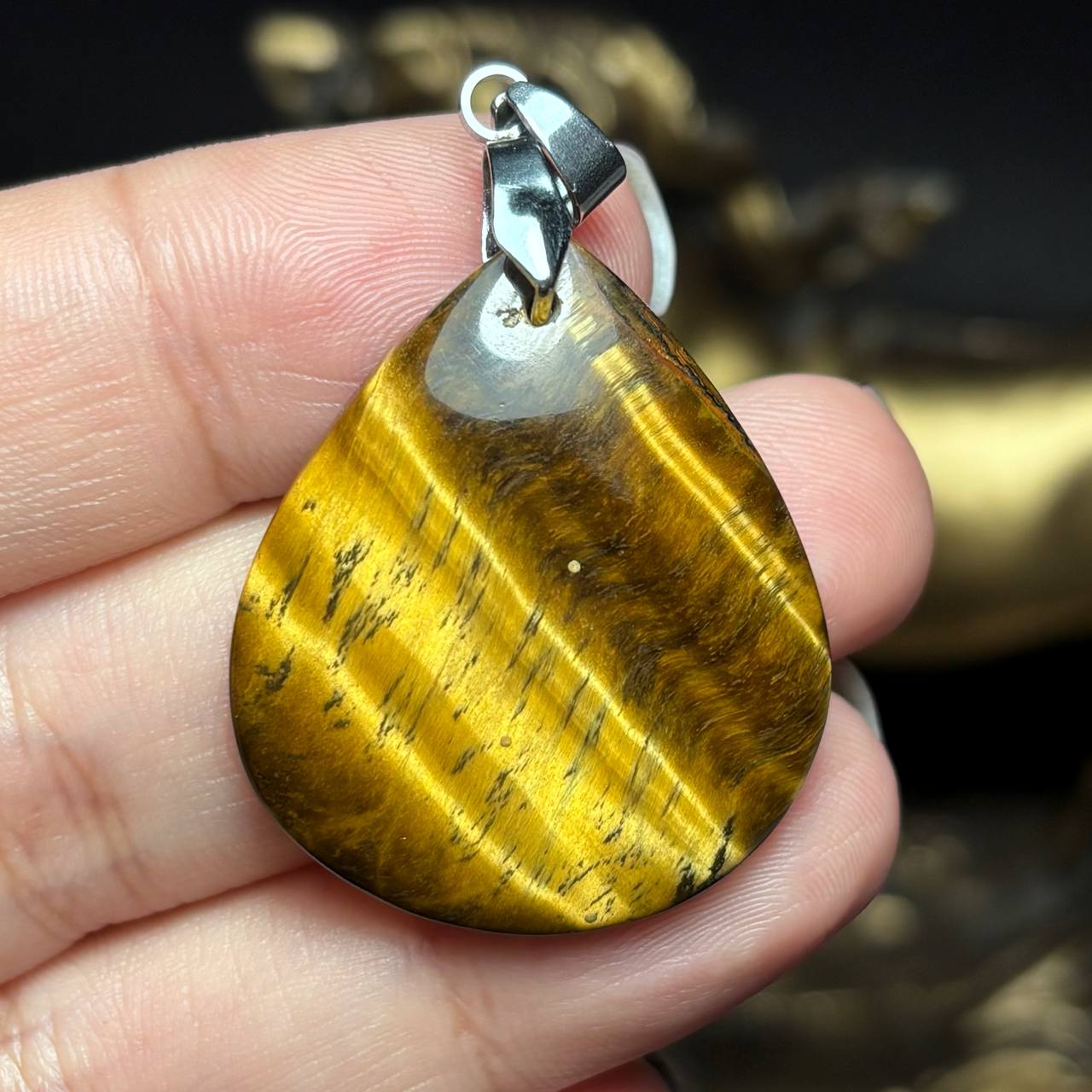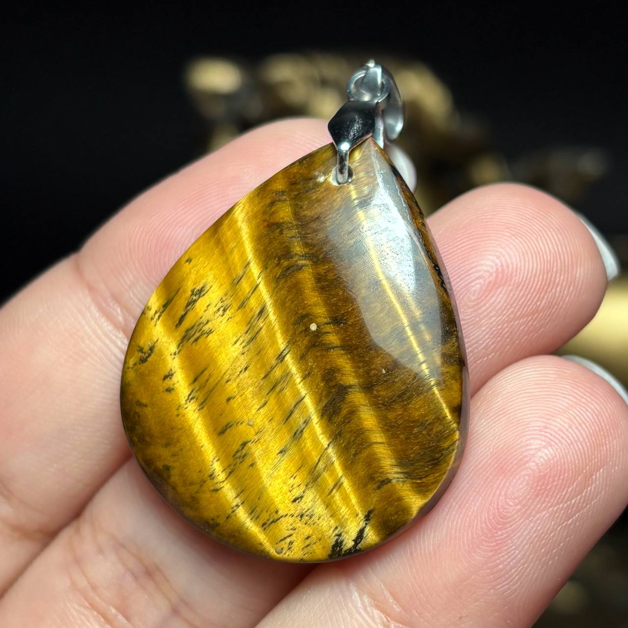 آویز گردنبند سنگ طبیعی چشم ببر معدنی کد k1202