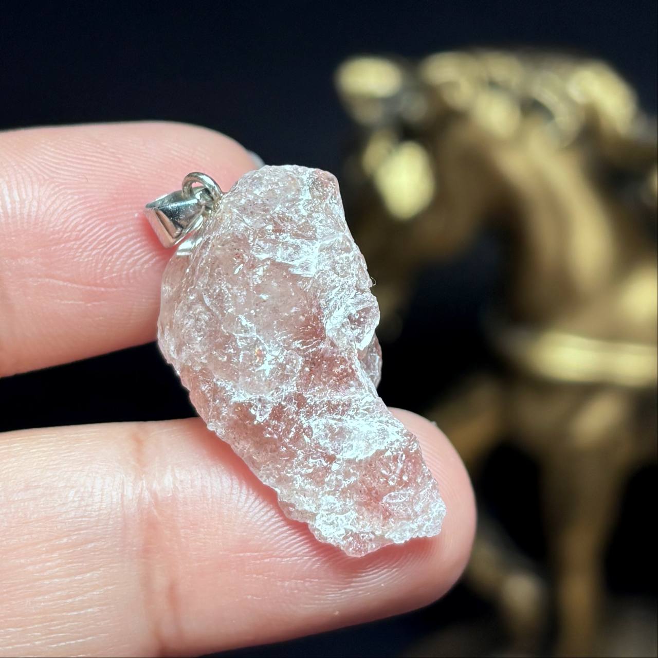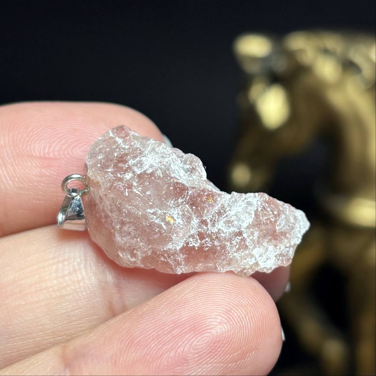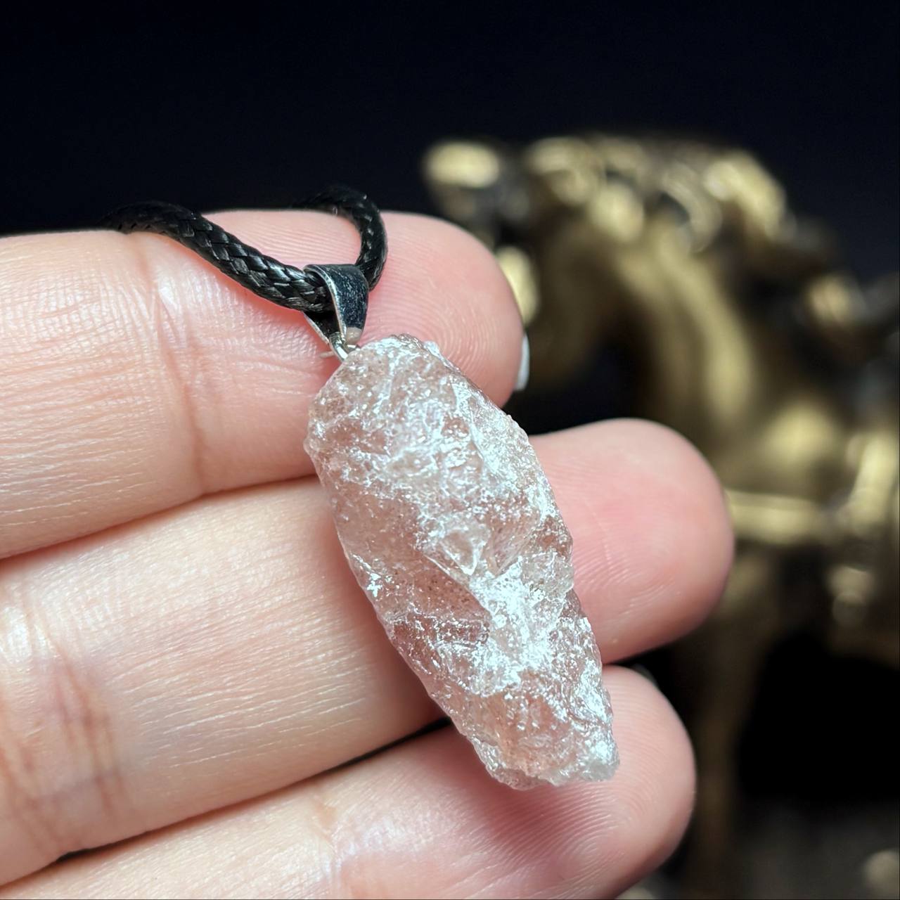 آویز  گردنبند سنگ راف استرابری کوارتز معدنی کد k1212