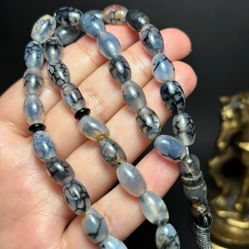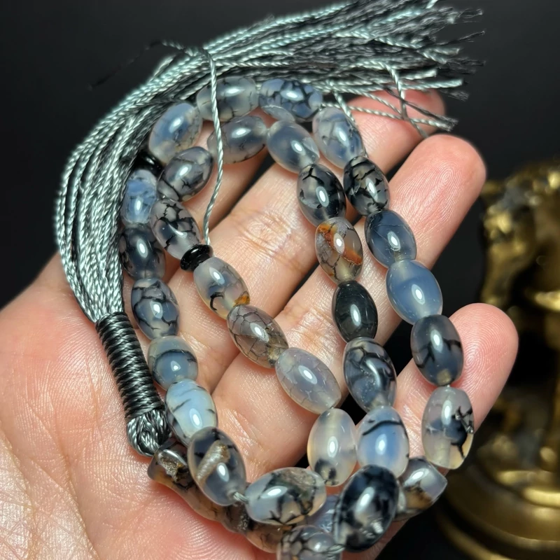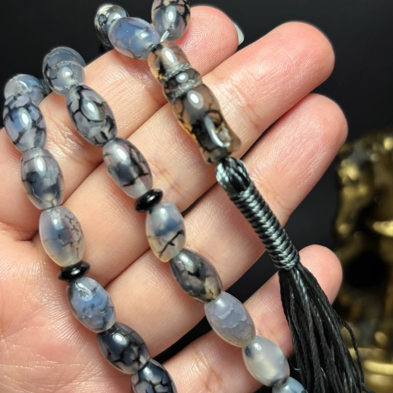 تسبیح 33دانه سنگ عقیق دراگون دانه هلی معدنی کد Z7229
