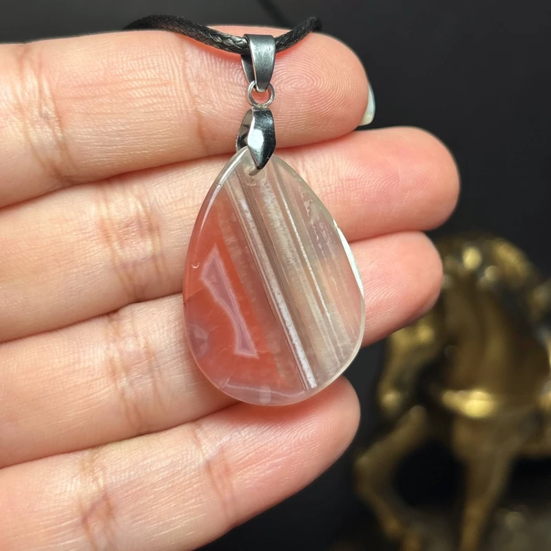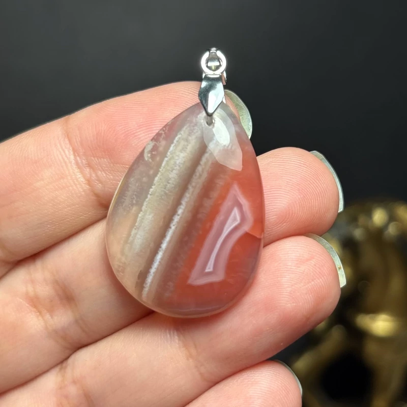 آویز گردنبند سنگ عقیق معدنی (ترک طبیعی ریز روی کار) کد k1281