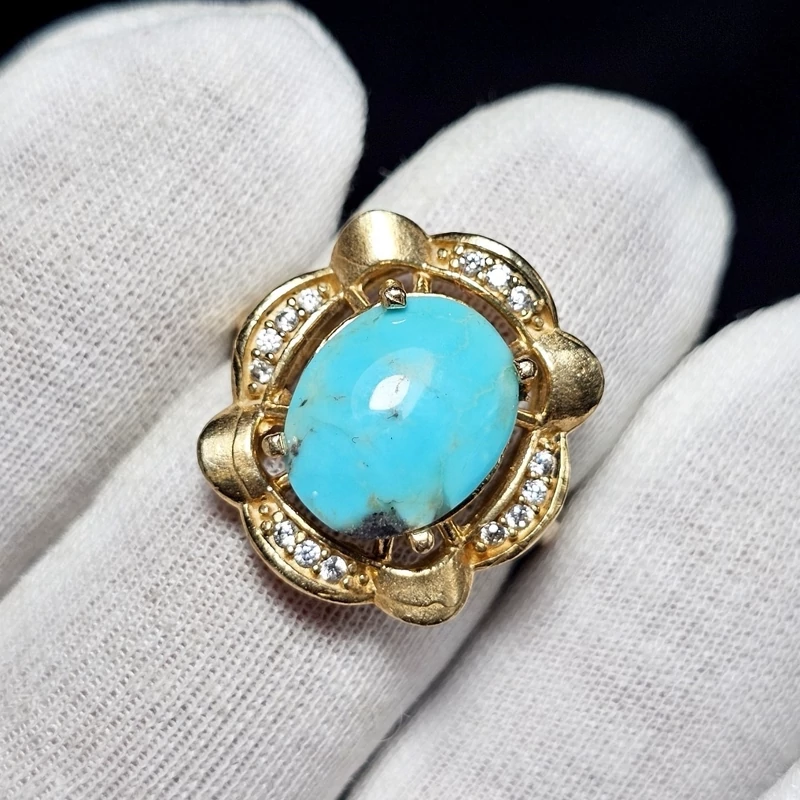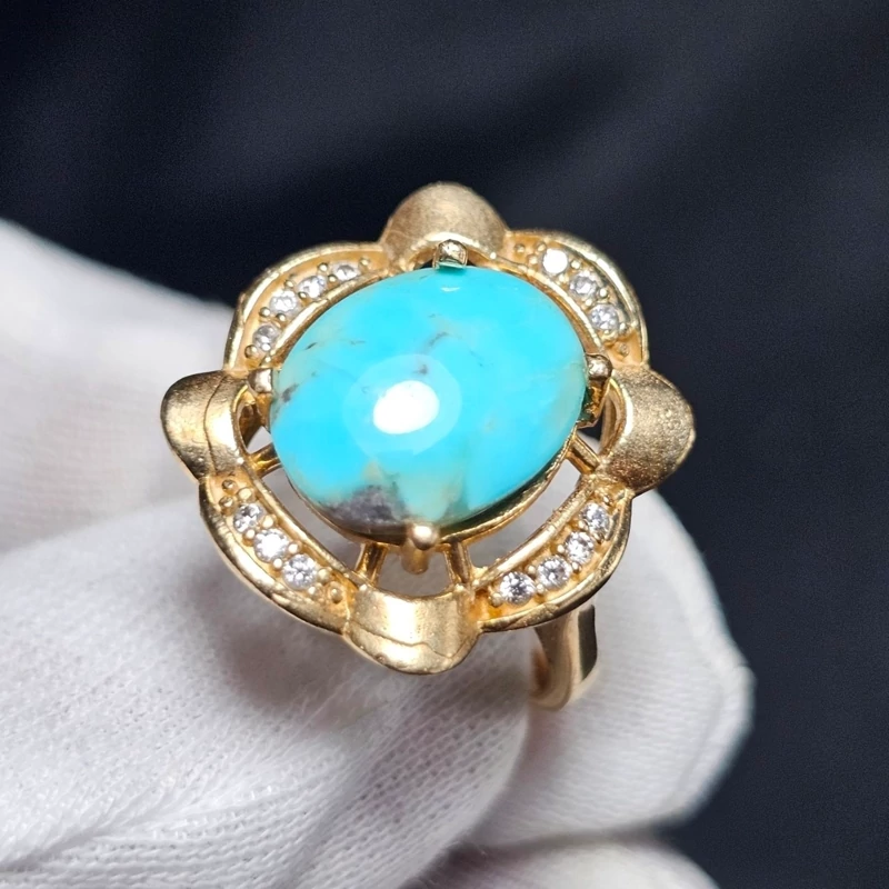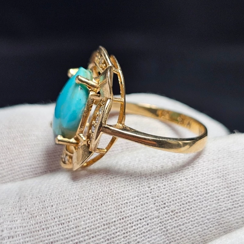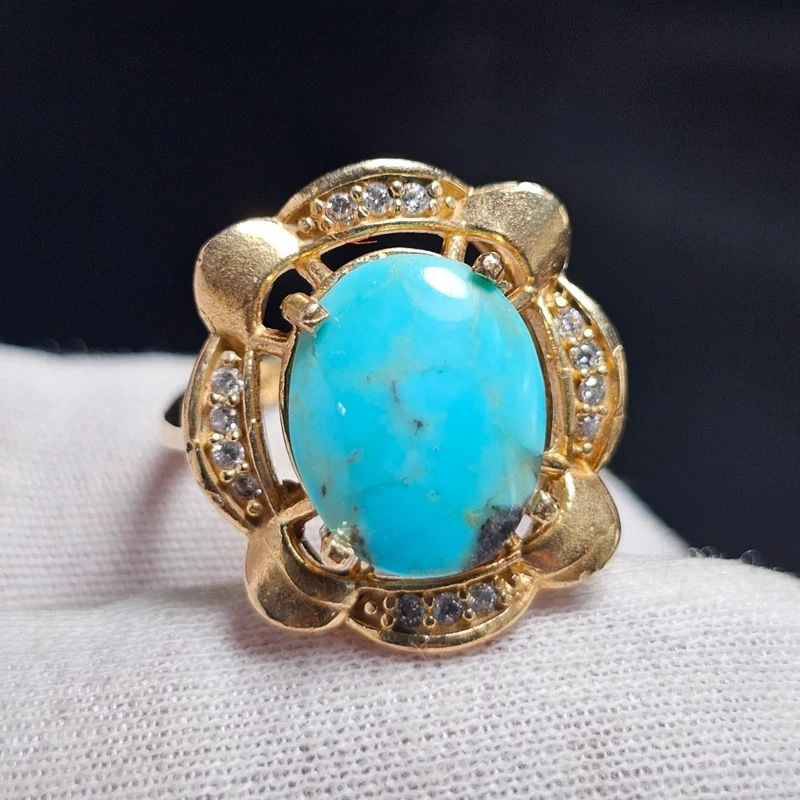 انگشتر طلا روس با سنگ فیروزه مغز نیشابور کد 37955