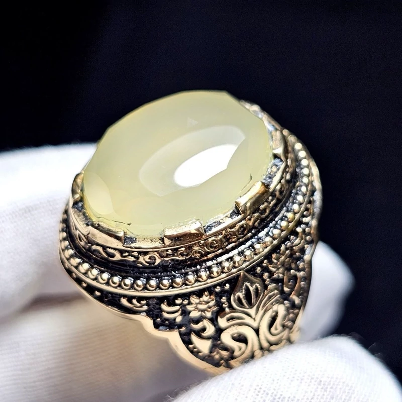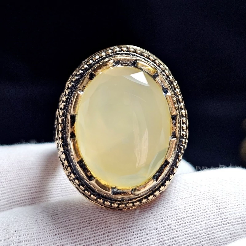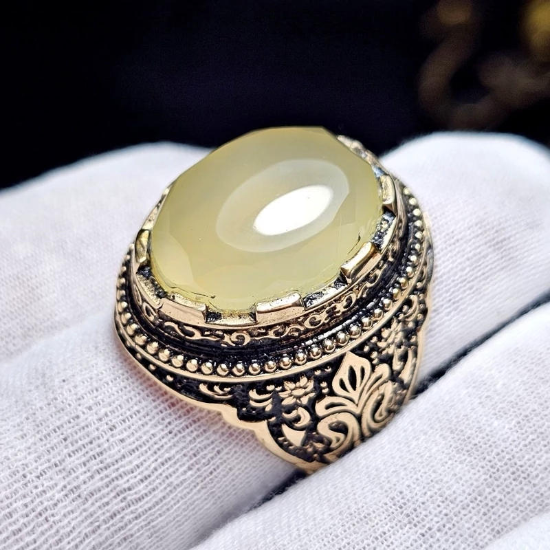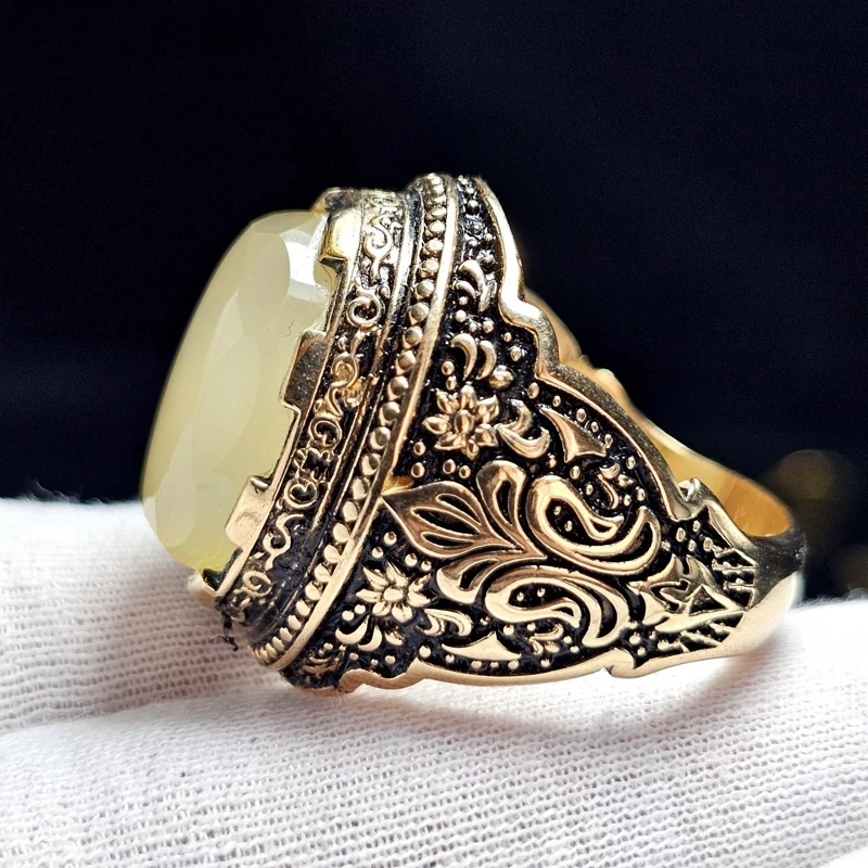 انگشتر طلا روس با سنگ عقیق زرد معدنی تراش فست دعای شرف الشمس 37909