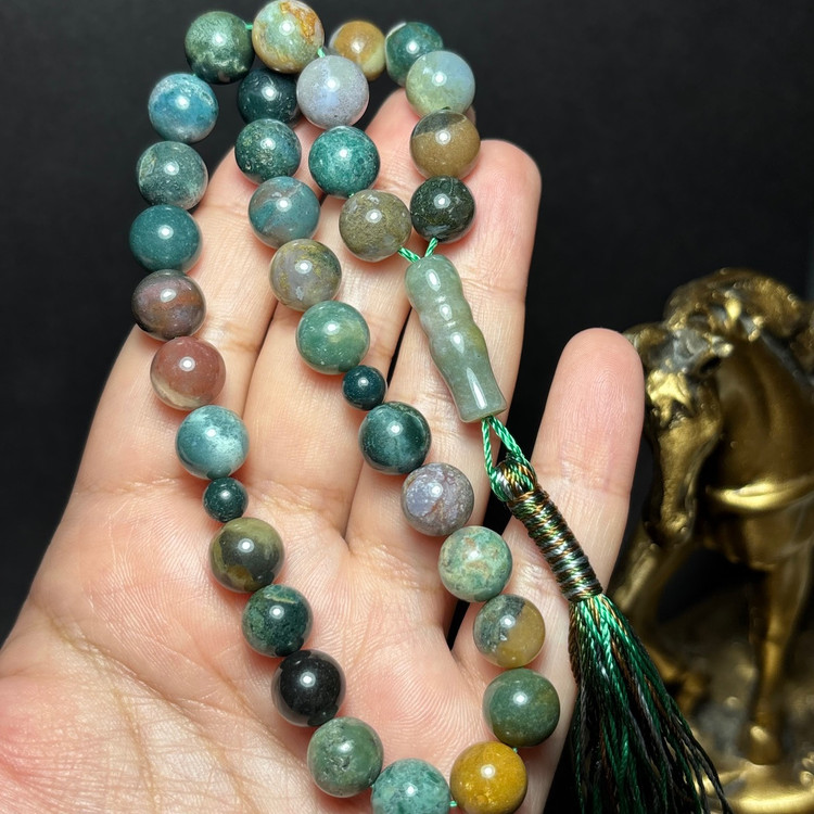 تسبیح 33 دانه عقیق خزه ای معدنی