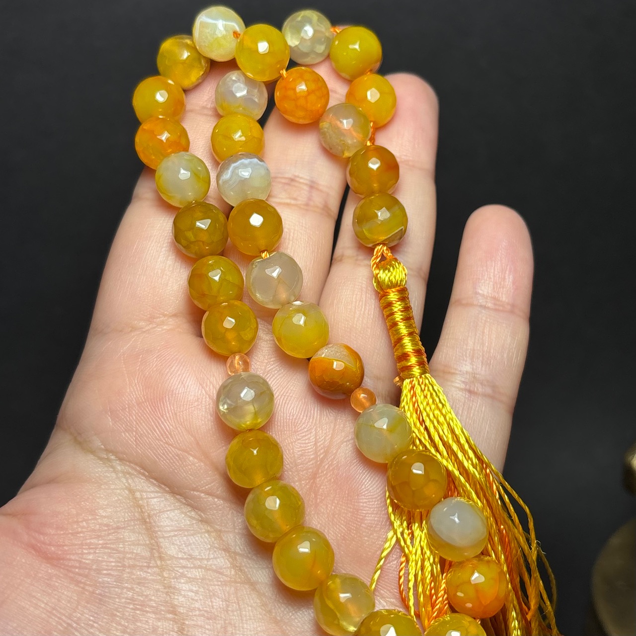 تسبیح 33 دانه عقیق دراگون زرد معدنی