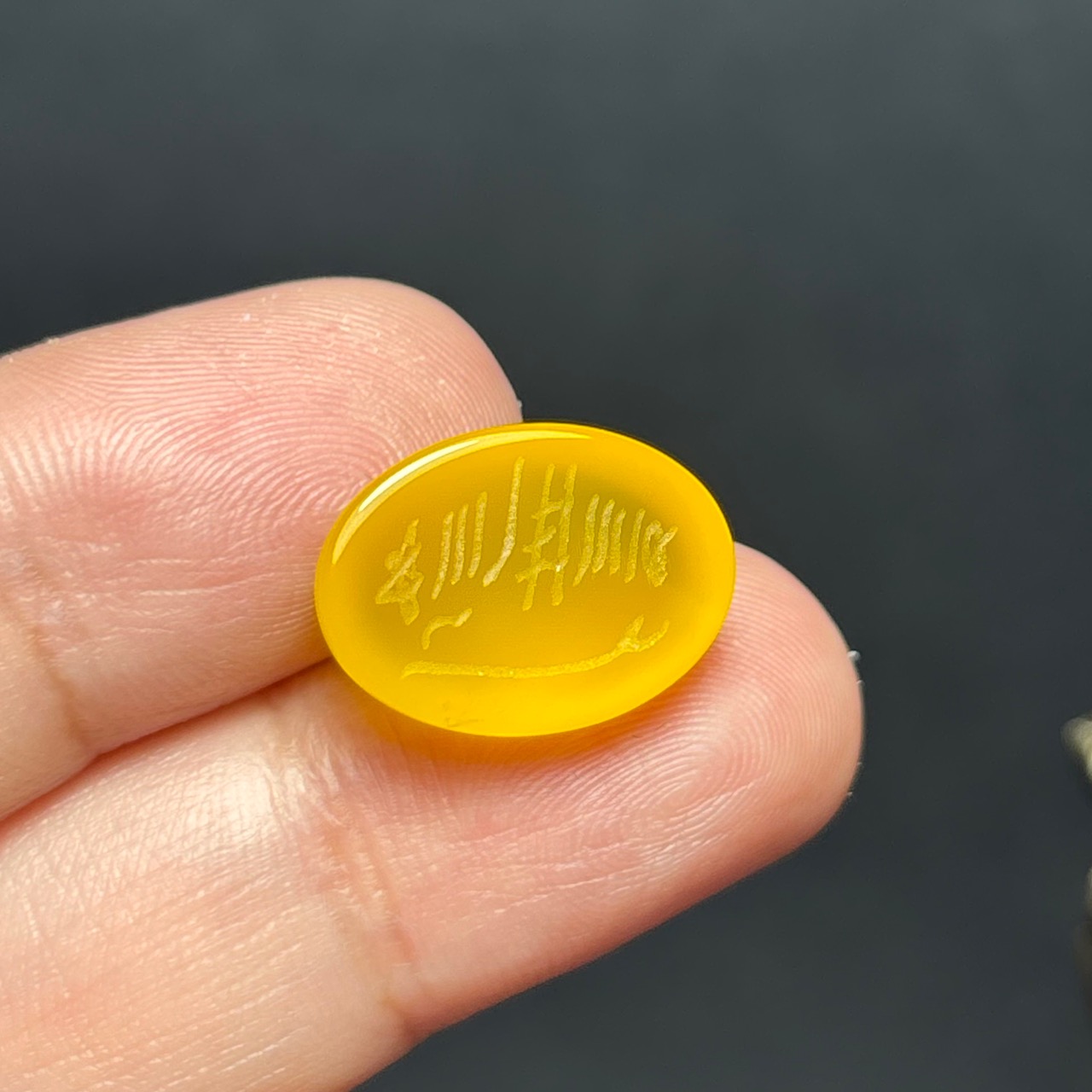 نگین سنگ عقیق زرد با دعای شرف الشمس معدنی