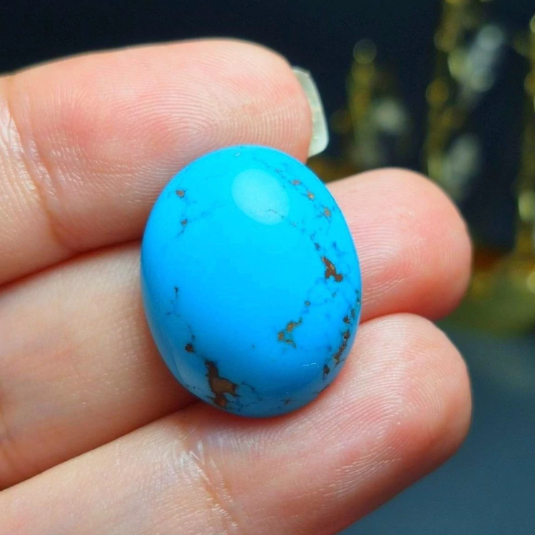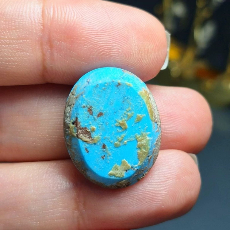 نگین سنگ فیروزه خوش رنگ معدنی کد 60371 ▪️ابعاد : 22 در 18 میلیمتر ▪️وزن : 5/34 گرم