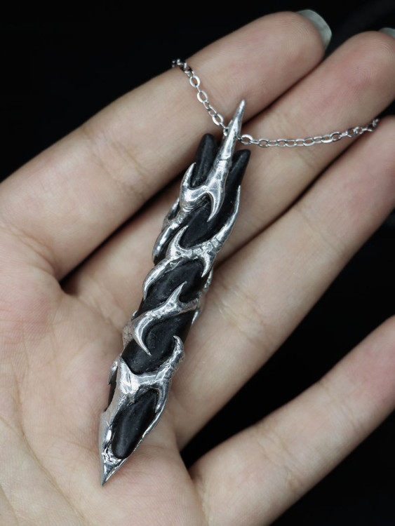 تاب مرگ: آویز سنگ طبیعی یشم عباس آباد با تکنیک سولدرینگ