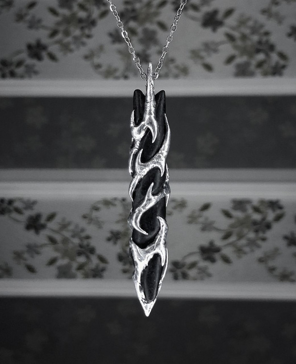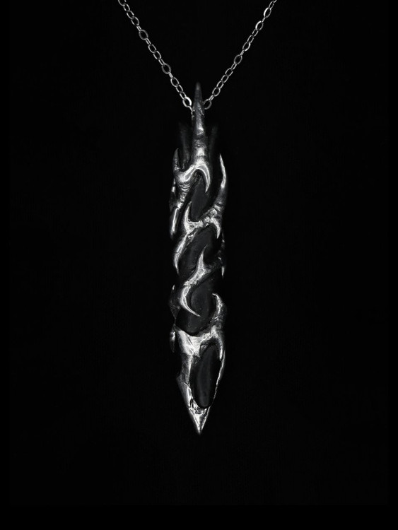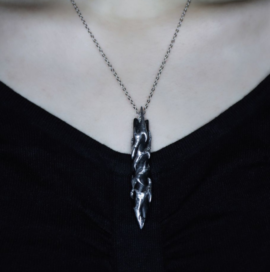 تاب مرگ اثری یگانه و دستساز است؛ خلاقهای هنری که بهصورت تکنسخه و با صرف زمان، اندیشه و دستان توانای هنرمند شکل گرفته است. این اثر با الهام از باورها، فرم و ساختار سنگ یشم عباس آباد طراحی شده و نام آن نیز برآمده از روایت همین سنگ و جهان درونیاش است. تاب مرگ بیش از یک زیور است؛ تفسیر و بازتابی از نگاه هنرمند به فرم، طبیعت و معنا.