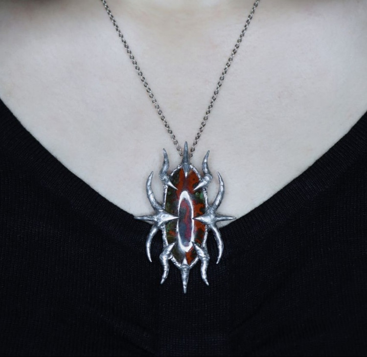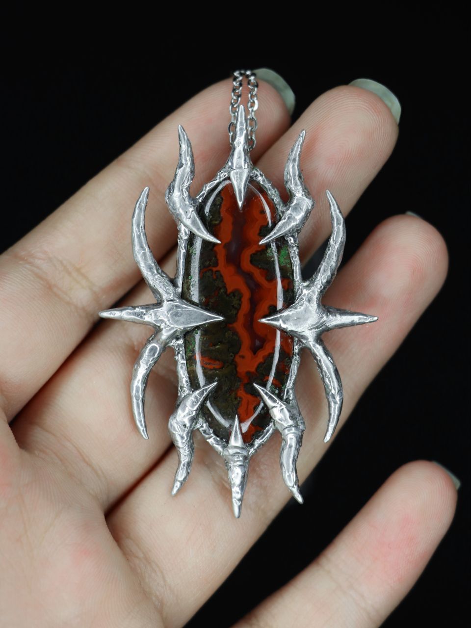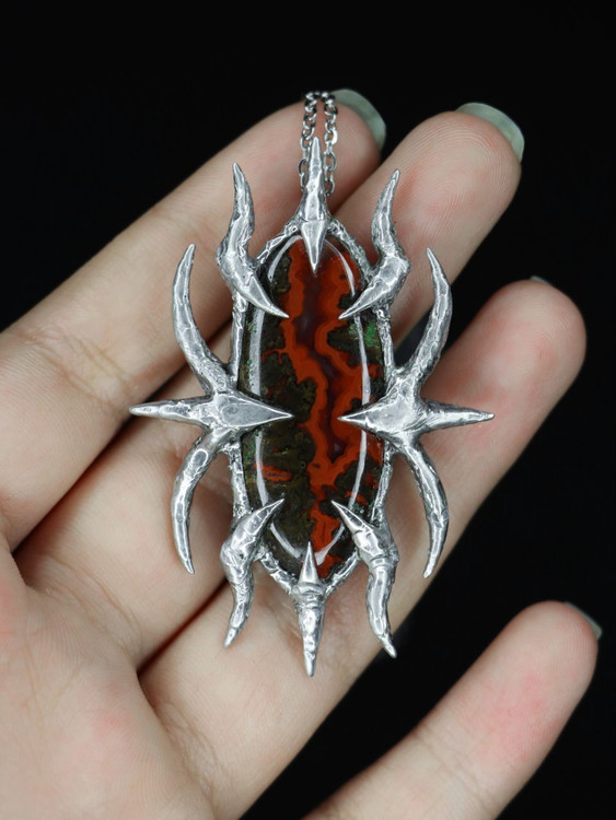 رود خون: آویز دست ساز سنگ طبیعی سیم آگات معدنی با تکنیک سولدرینگ