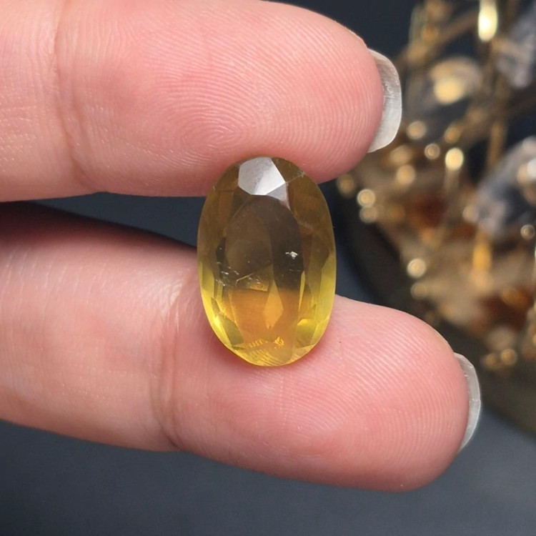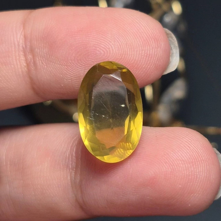 نگین سنگ کوارتز لیمویی نئونی معدنی آفریقایی کد 60441 ▪️ابعاد : 17 در 10/5 میلیمتر ▪️وزن : 10 قیراط