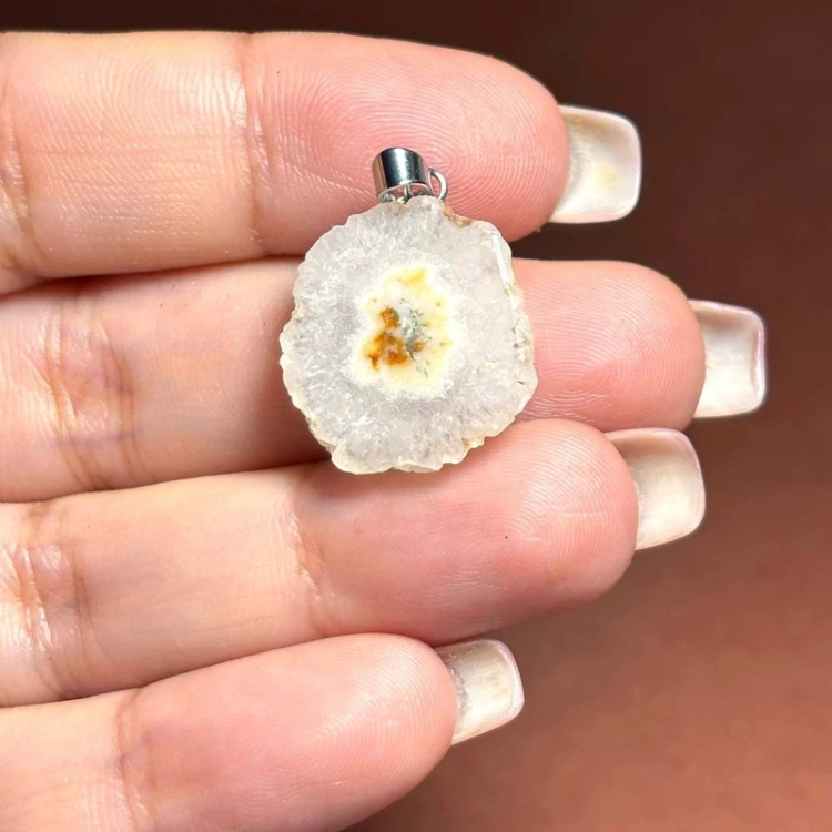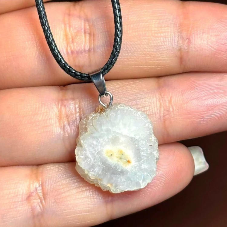 آویز گردنبند اسلایس سنگ طبیعی کوارتز خورشیدی معدنی کد 60219