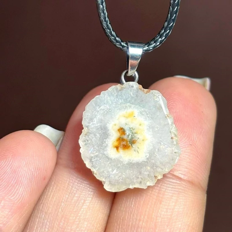 آویز گردنبند اسلایس سنگ طبیعی کوارتز خورشیدی معدنی کد 60219