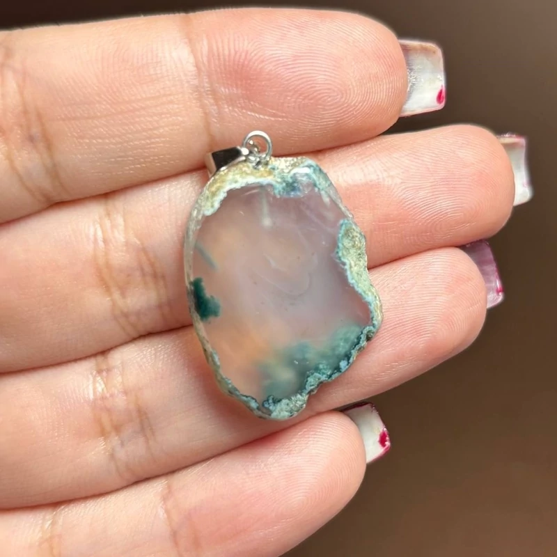 آویز گردنبند اسلایس سنگ طبیعی عقیق شجر معدنی کد 60287 ▪️وزن : 6/21 گرم