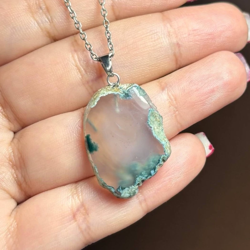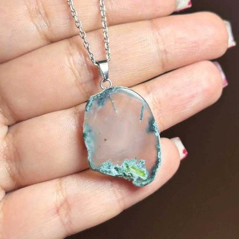 آویز گردنبند اسلایس سنگ طبیعی عقیق شجر معدنی کد 60287