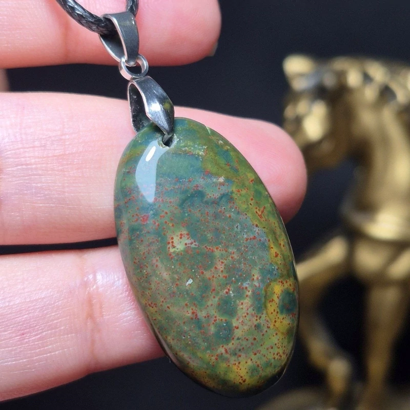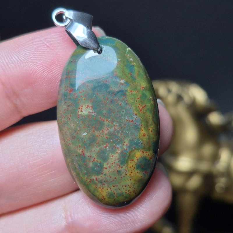 آویز گردنبند سنگ طبیعی سنگ خون معدنی کد Z7116