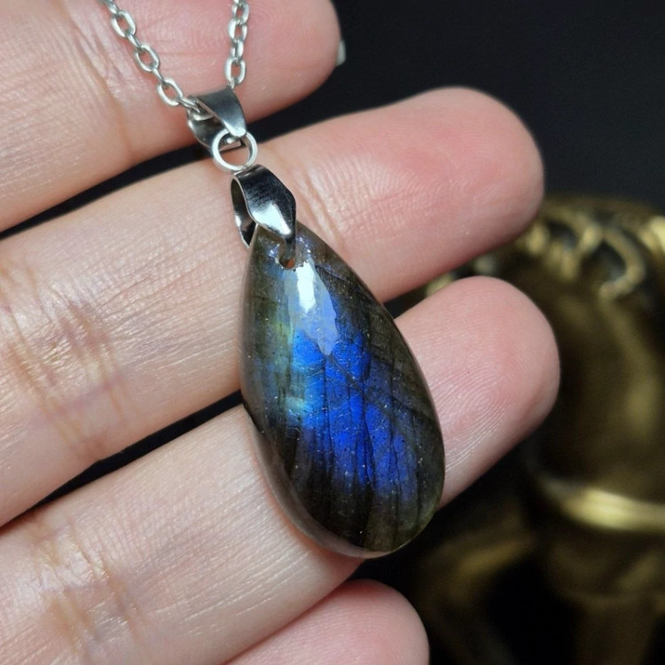 آویز گردنبند سنگ لابرادوریت معدنی کد Z7071