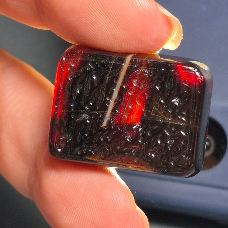 نگین درشت سنگ عقیق معدنی با خط دست کد 60416 ▪️ابعاد : 27 در 20/5 میلیمتر