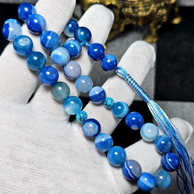 تسبیح 33 دانه عقیق آبی سلیمانی معدنی