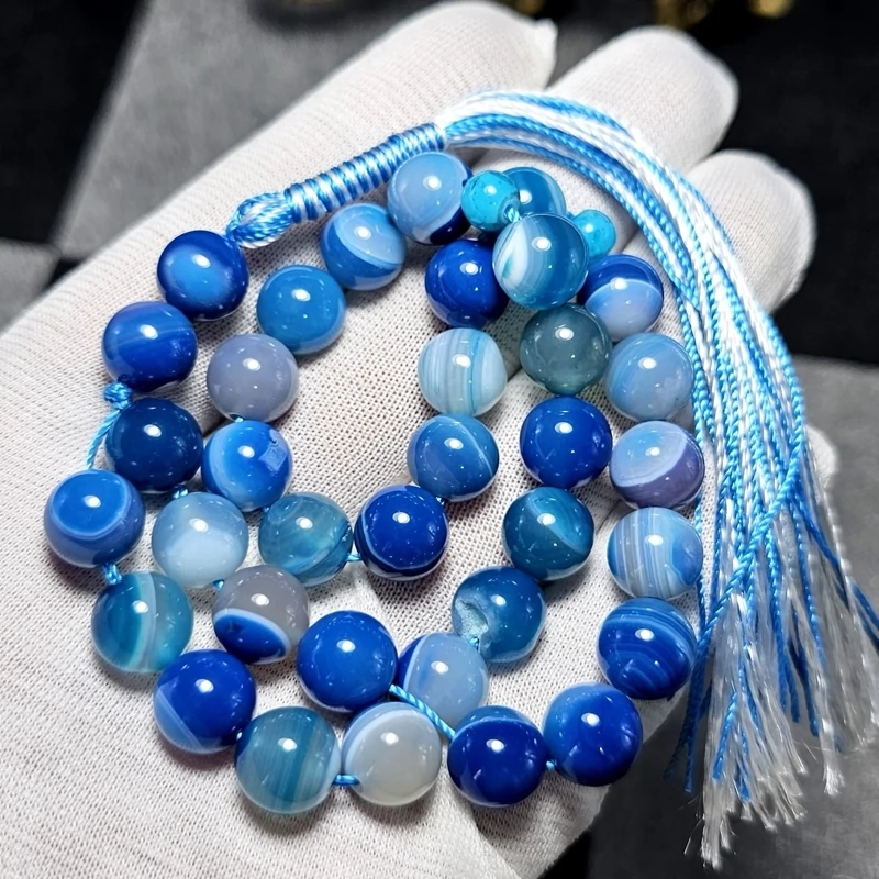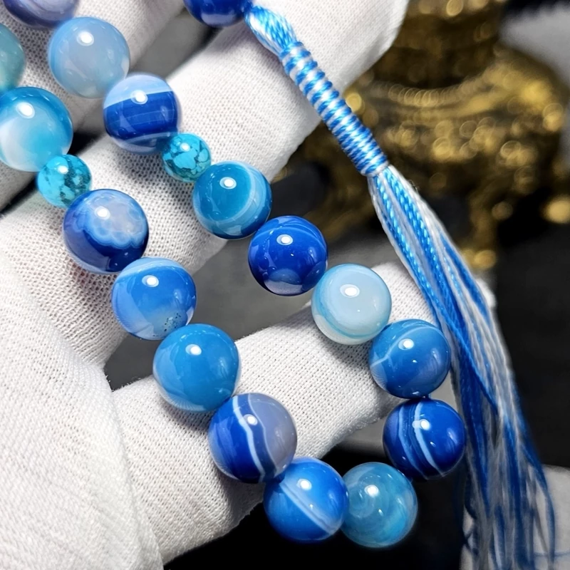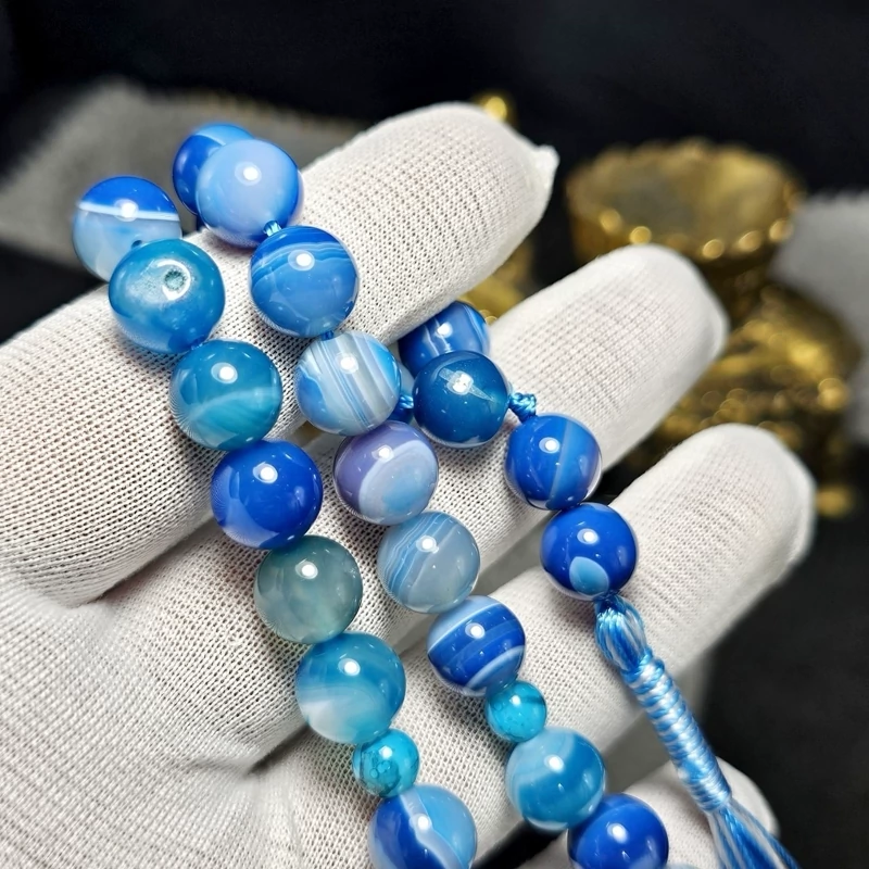 تسبیح 33 دانه عقیق آبی سلیمانی معدنی
