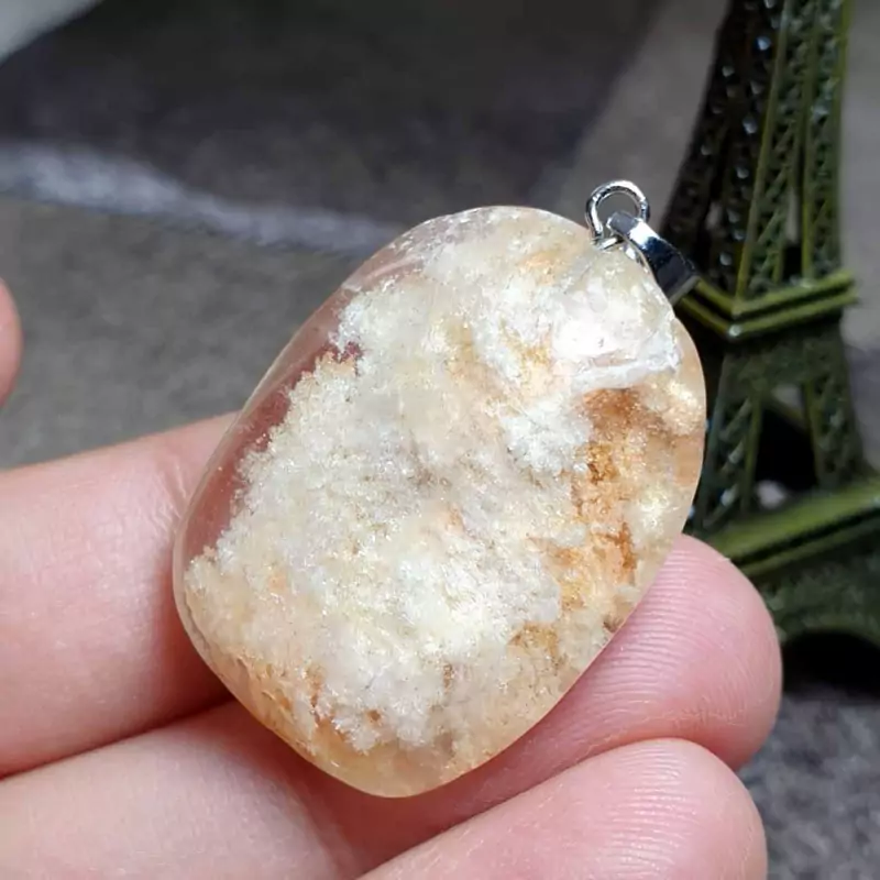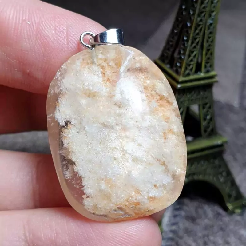 گردن آویز فوق العاده زیبای سنگ طبیعی فانتوم کوارتز اصل معدنی کد 25784