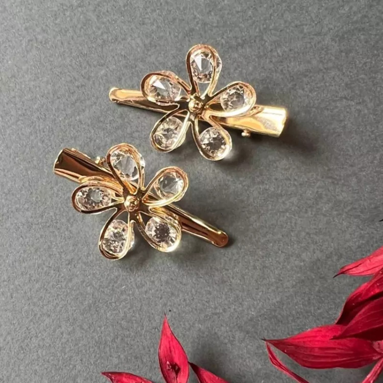 گیره انبری مجلسی طلایی شیک دخترانه جفتی