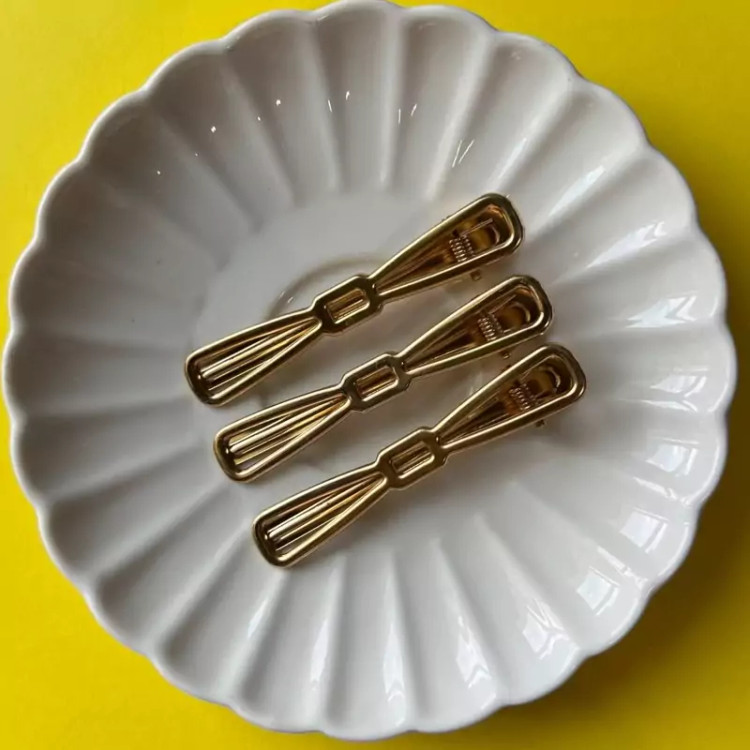 یه گیره طلایی رنگ پاپیونی و رنگ ثابت که برای هر سنی مناسبه. به صورت انبری بسته میشه و روی موهای مشکی خیلی جلوه زیبایی داره.