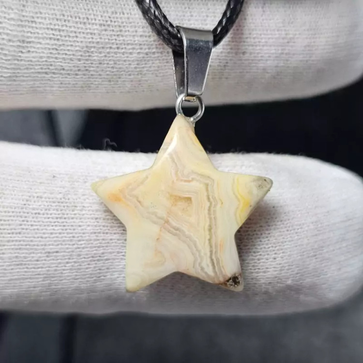 گردن آویز ستاره ای سنگ کریزی لیس اگات معدنی