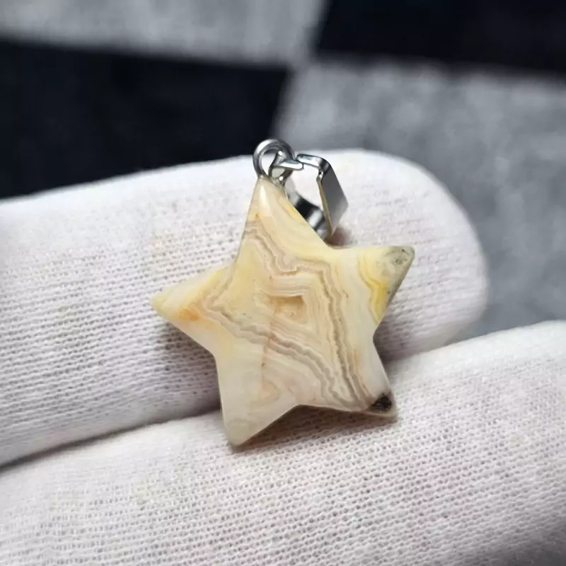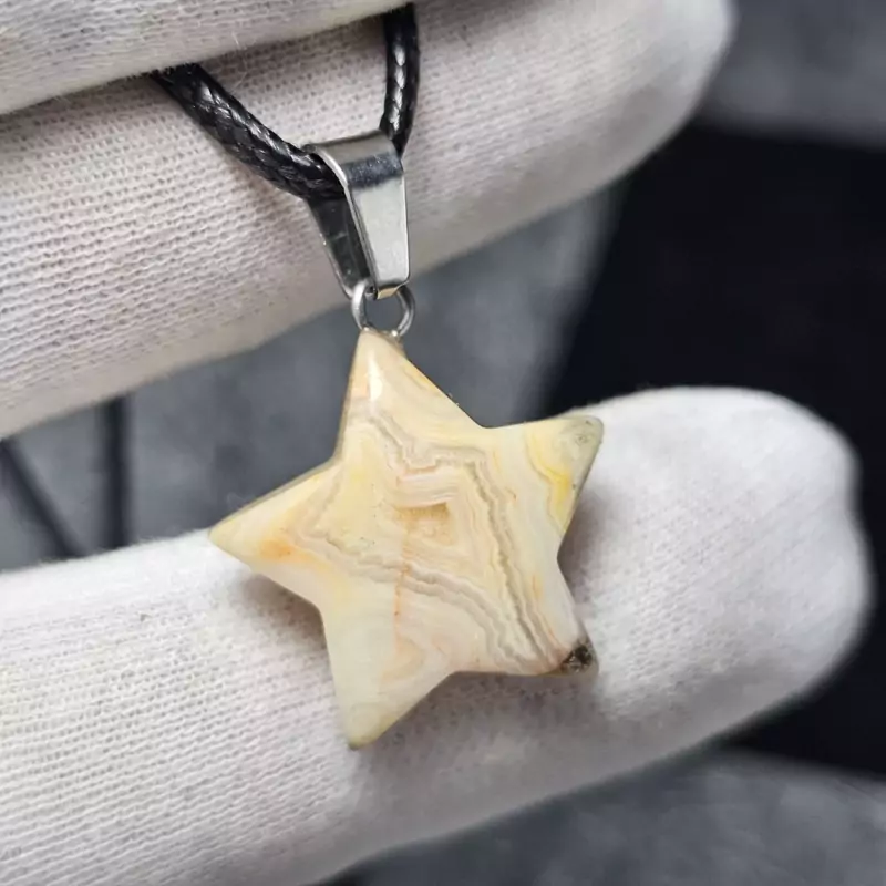 گردن آویز ستاره ای سنگ کریزی لیس اگات معدنی
