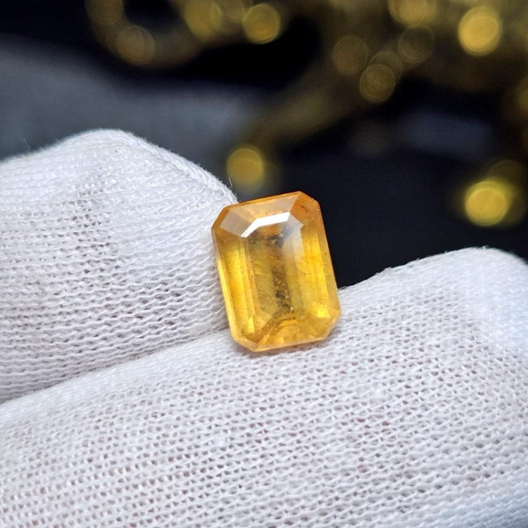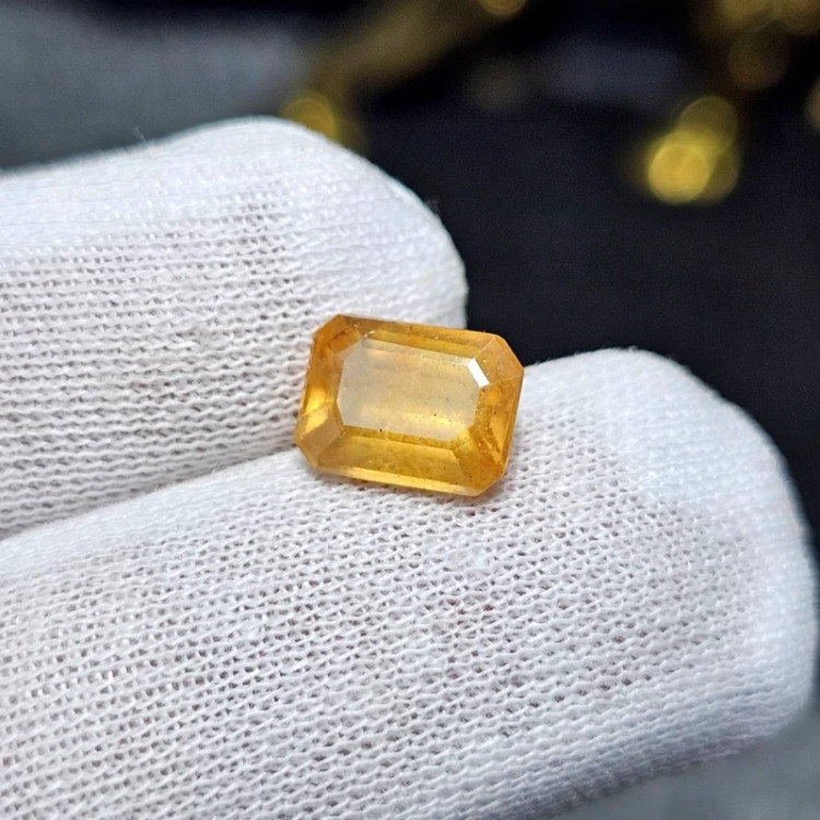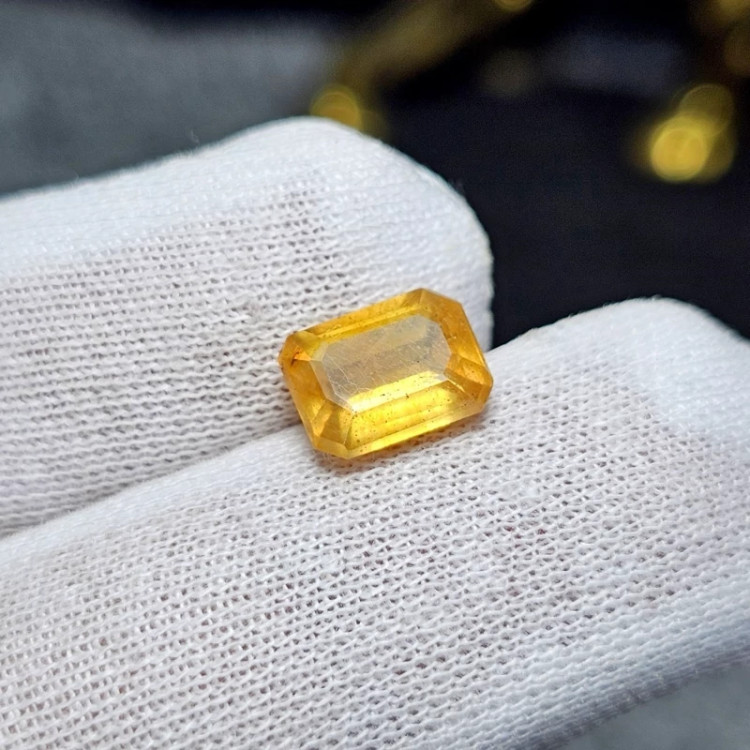 نگین سنگ یاقوت زرد معدنی آفریقایی تراش امرالد