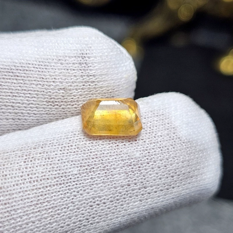 نگین سنگ یاقوت زرد معدنی آفریقایی تراش امرالد