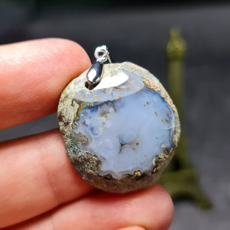 گردن آویز اسلایس سنگ طبیعی عقیق معدنی کد 26878