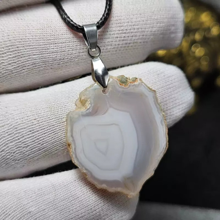 آویز گردنبند اسلایس سنگ طبیعی عقیق سلیمانی معدنی خراسانی